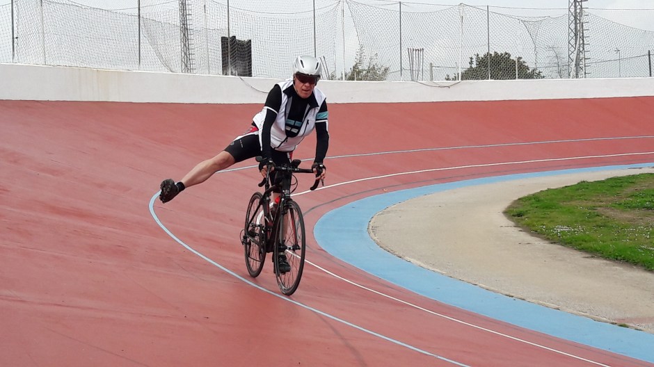 Gestärkt und wohlig entspannt steigen wir wieder auf die Räder. Sineu ist der nächste Stopp. Peter hat mir schon bei der Anfahrt von der Radrennbahn erzählt, und so biegen wir am westlichen Ortsrand ab zum Velodromo del Tirador.“Die Piste mit den Steilwandkurven wurde 1903 eingeweiht, es war die Erste ihrer Art in ganz Spanien – ein Hinweis auf die große Bedeutung des Radrennsports in der ersten Hälfte des vergangenen Jahrhunderts auf Mallorca. Das dazugehörige Vereinsheim von „Veloz Sport Balear“ stammt von 1918 und ist ein Werk des bekannten Architekten Gaspar Bennàssar, der unter anderem auch die Stierkampfarena gebaut hat.“ So ist es im Mallorca-Magazin von 2015 zu lesen. Erst im Jahre 2016 wurde die verfallene Betonbahn komplett restauriert und jedermann wieder zugänglich gemacht.