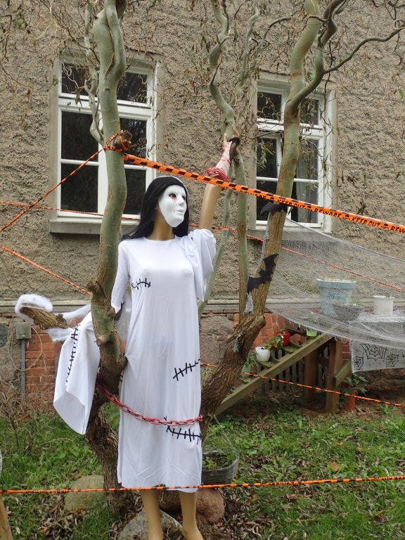 In Schulzendorf, vor der ARCHE-Kinderranch, rollen auch Köpfe und fließt auch Blut, allerdings hier in einer aufwändigen Installation zu Halloween: