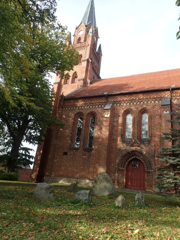Die Bahnlinie, die ursprünglich bis Zempow führte, wurde übrigens nach 1945 im Rahmen von Reparationsleistungen abgebaut. Heute kann ich mich als Spätfolge über den glatten, hügelfreien Radweg freuen. Zempow, Sewekow, Karbow, bald bin ich am Meer. Nein, nicht an der Ostsee, aber am größten Binnensee des deutschen Landes, dem Müritzsee. In Röbel mache ich einen Erkundungsgang um die mächtige Backsteinkirche St. Marien, die auf einem kleinen Hügel thront.