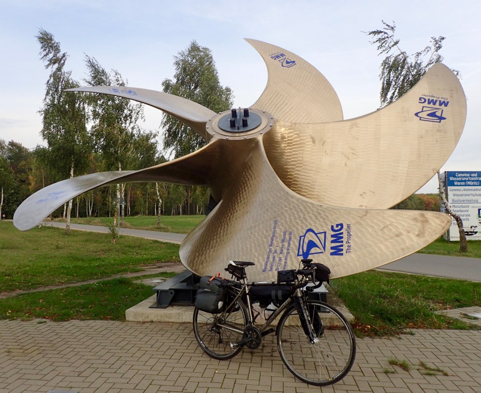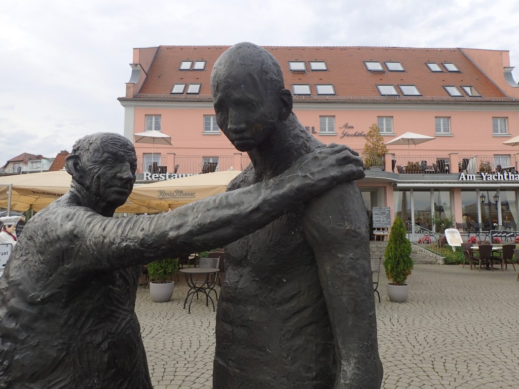 Am Yachthafen steht die Skulptur „Der verlorene Sohn“ von Stefan Voigtländer. Zur späten Nachmittagsstunde halte ich mich hier nicht lange auf, obwohl das Ambiente einladend ist. Zuerst kurve ich hinüber zum Tiefwarensee und dem gleichnamigen Hotel, in dem ich ein komfortables Zimmer beziehe. Duschen, frischmachen und dann wieder hinüber in die Altstadt. Es hat angefangen zu regnen. Alle Menschen, die ich vorher in den Gassen gesehen hatte, scheinen die wenigen „Corona-Plätze“ in den Restaurants reserviert zu haben. So bin ich froh, bei einem netten Italiener noch eine Pizza und ein Viertel Rotwein zu bekommen. Um 22 Uhr liege ich im Bett, schaue noch die Nachrichten und schlummere hinweg.
