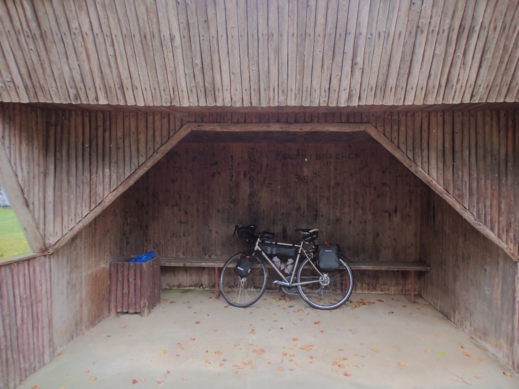 Ich teste einige mehr oder weniger luxuriöse Wartehäuschen. So richtig gemütlich ist das nicht. Aber Hauptsache die Füße und die Hände bleiben warm. Ich passiere die bekannten Brevet-Kontrollorte Teterow und Tessin. Meistens kamen wir hier bei Sonnenaufgang oder auch etwas früher vorbei, wenn wir auf einem 600er Brevet unterwegs waren. Wie ist das doch beschaulich heute im Vergleich dazu. Fischland, den ersten Teil der Halbinsel, erreiche ich bei Dierhagen und kurbele mich dort zum Strand durch. Grau ist die Ostsee, nur die Wellenkämme setzen weiße Streifentupfer.