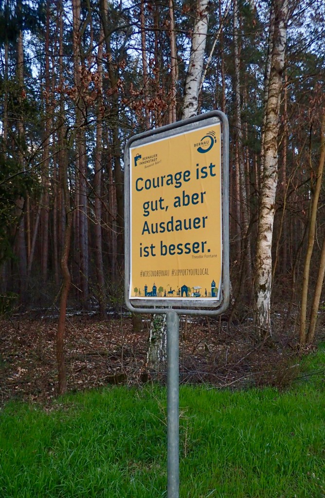 Ich verwerfe meine Plan, in Chorin in die Bahn zu steigen, zu schön lacht die Sonne, zu gut fühlen sich die Beine an. Also rolle ich gen Eberswalde, auf dem Treidelweg nach Westen und bin bei Bernau schon fast wieder zu Hause.