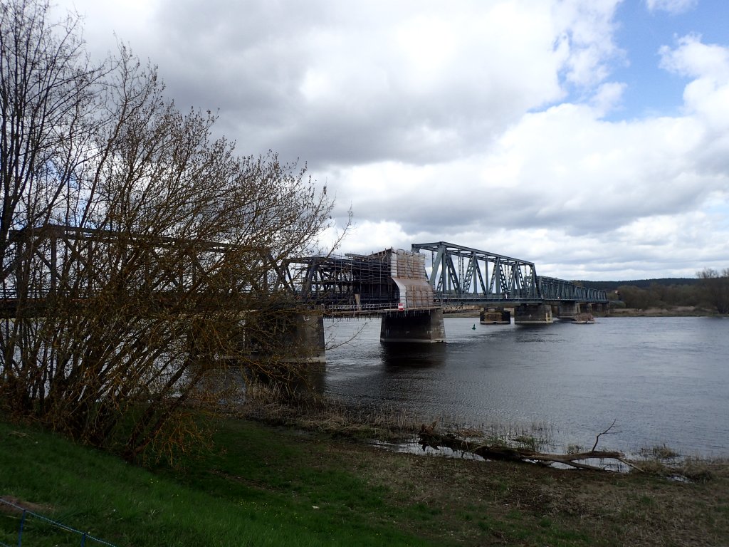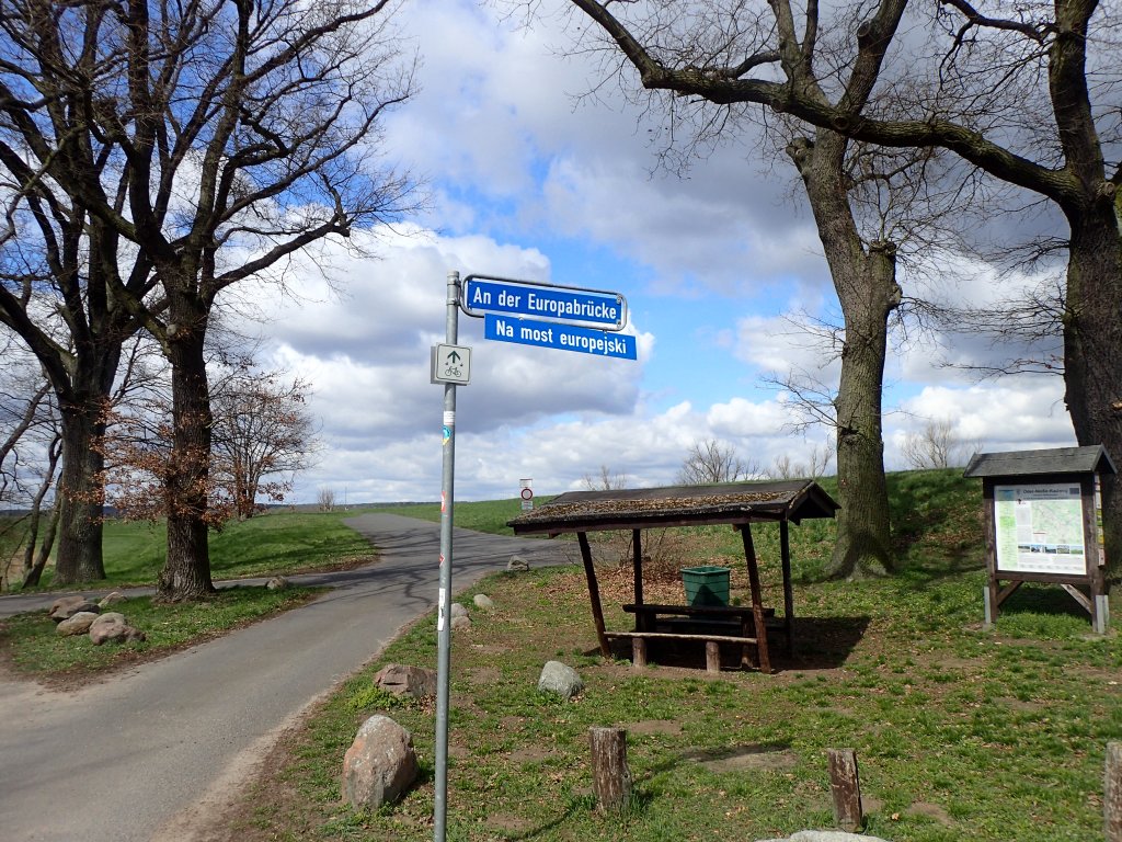 In Bienenwerder erreiche ich den Oderdeich und die Oder. Genau dort, wo die alte Eisenbahnbrücke ( Europabrücke) hinüber nach Polen führt. Besser: noch im Jahr 2021 nach Restaurierung mit 3,6 Millionen Euro Europafördermitteln ihrem Namen endlich gerecht werden kann und dann Wanderern und Radfahrern die Oderquerung nach Polen wieder ermöglichen soll.