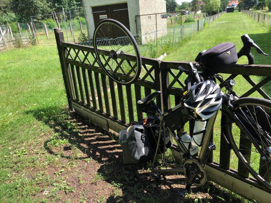 In Etappen durch das Land – endlich wieder mal ein paar Tage im Sattel und Neues entdecken. Nach Westen hin will ich aus dem Speckgürtel der Stadt hinaus ins Havelland und dann rüber an die Elbe. Mein Granfondo ist mittlerweile routiniert im Lasten tragen – hinten die beiden Ortlieb Gravelpacks, am Oberrohr eine kurze Tasche, die noch genügend Raum für eine große und eine mittlere Trinkflasche lässt und an der Gabel links noch die erprobte Forkbag mit Flickzeug, Schloss etc.