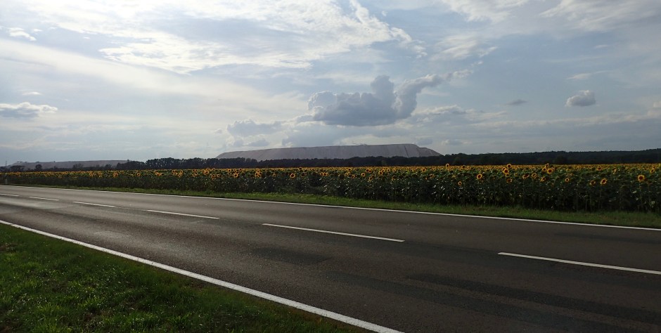 An diesem Gasthof ist die Zeit vorbeigeströmt und hat die Gastlichkeit mitgenommen. Und Diamant Pilsener gibt es seit mehr als 20 Jahren nicht mehr. Also kurbele ich weiter. Noch sind die Beine gut und meine Laune auch. In der Ferne taucht der Kalimandscharo von Zietlitz auf. Aber Obacht, wenn die mehr als 100 Meter hohe Abraumhalde schon nahe scheint, ist sie noch locker 20 Kilometer entfernt.