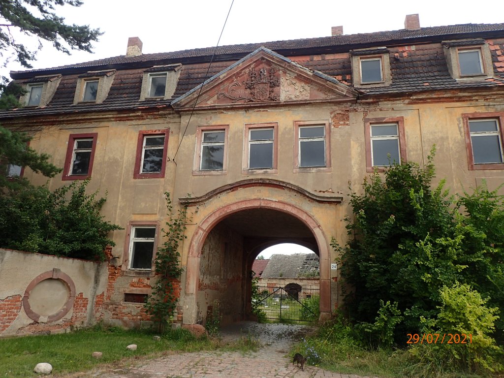 Fast 1000 Jahre steht schon die ehemalige Kirche St. Sixti auf einem kleinen Hügel. Sie wurde nie zu Ende gebaut und schon vor ca. 500 Jahren als Kirche aufgegeben. Die Reformation sorgte dafür, dass sie keine Bedeutung mehr hatte. Im 19. Jhd. wurde der Kirchturm gar zum Wasserspeicher umgebaut. Eine wahrlich seltsam anmutende Historie eines Kirchenbauwerks. Bei meiner zweiten Merseburg Durchfahrt bleibe ich auf der Hauptstraße, werfe noch einen Blick hinüber zum Schloss und zum Dom, dann rolle ich nach Osten an das Flüsschen Luppe, das mich nach Leipzig führt. In Dölkau staune ich über das alte und heruntergekommene Gutshaus, das zum herausgeputzten Schloss Dölkau gehört, aber seltsamerweise von der Restaurierung oder nur vom Erhalt gänzlich ausgenommen wurde. Morbider Charme.
