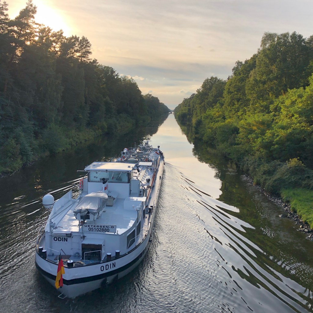 Die Sonne steht schon niedrig über dem Horizont, als sich auf dem Oder-Havel-Kanal der Tanker Odin auf dem Weg ins ferne Ruhrgebiet unter der Brücke hindurchschiebt. Jetzt noch 30 Kilometer nach Süden, und schon werde ich zu Hause ein wohlverdientes Bier genießen können.
