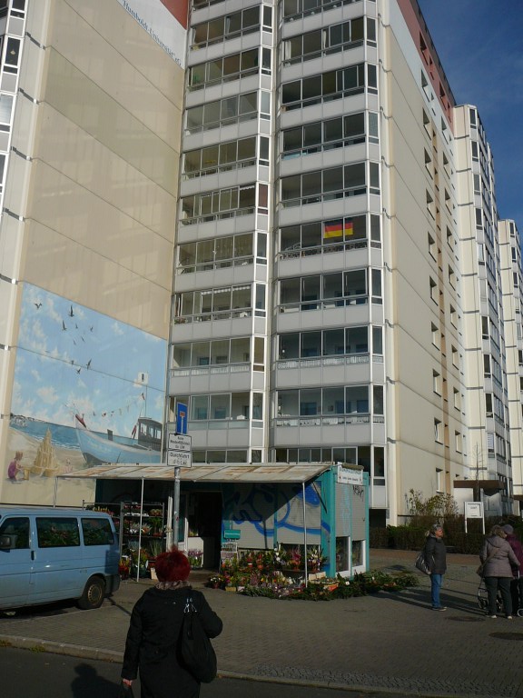 Wohnungen für mehr als 60.000 Menschen entstanden. Reichlich Beton, aber auch Spielplätze, Schulen, Schwimmhallen und einige Parkanlagen, die etwas Grün ins Grau der Bauten bringen sollten. Auf der östlichen Seite der S-Bahn-Linie sehen die Bauten anders aus. Die Klötze ragen höher in den Himmel, die Neubrandenburger-, Rostocker- , Demminer Straße künden von den Plattenlieferanten aus dieser Region.