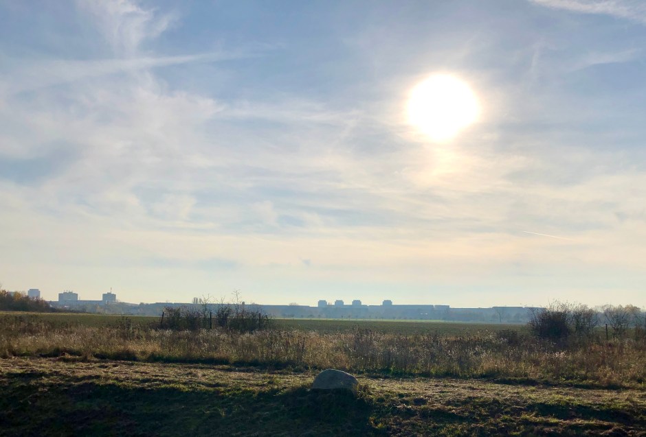 Die Tage schrumpfen Tag für Tag, langsam kommt der Winter nahe. Die Sonnenstunden werden weniger, die Tage mit Sonnenschein auch. Immer kostbarer wird das rare Gut. Heute ist Helios gut gelaunt und sendet warmes Licht auf die weiten, abgeernteten Felder am östlichen Stadtrand. Mühlenbeck, dann vorbei an den Arkenbergen, ein künstlicher Hügel, ein Schuttberg, der wieder begrünt ist und mit 122 Metern überm Meer seit 2015 die höchste Erhebung Berlins. Der Teufelsberg mit 120 Metern ist auf Platz zwei gerutscht. Kürzlich durften hier beim Gravel Krit die Sportler auf das sonst abgesperrte Gelände und Höhenmeter machen. https://www.youtube.com/watch?v=zfh4GkLkUK4