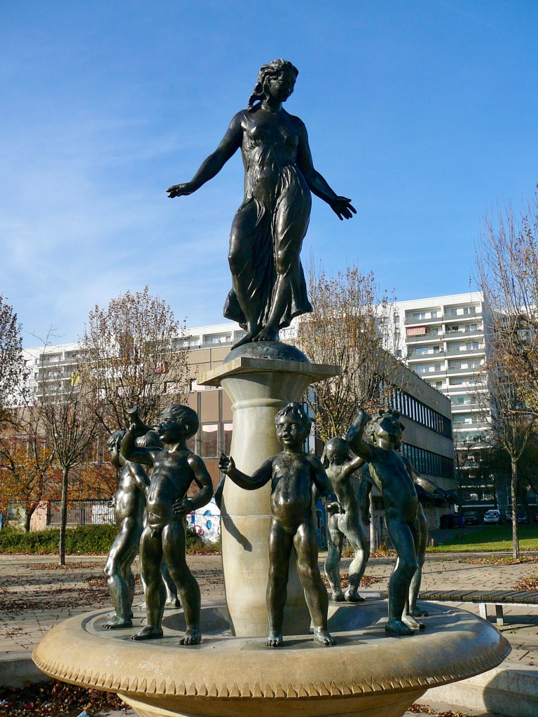 Ich sehe eine Vincent-van-Gogh-Schule, eine Schostakowitsch-Musikschule, fahre am „LindenCenter“ vorbei und erblicke den Brunnen der Jugend, der wie aus der Zeit gefallen scheint. Ursprünglich hatte die Stadt Schwerin schon 1975 den Auftrag für einen Brunnen mit Skulpturen an die Berliner Bildhauerin Senta Baldamus vergeben. Dann ging der Stadt das Geld aus und die bis dahin erstellten Entwürfe wanderten in einen Schweriner Schuppen und wurden dort zwischengelagert. Erst lange nach der Wende wurden dank der Marketinggesellschaft Berlin die zur Fertigstellung der Figuren erforderlichen Mittel zur Verfügung gestellt. Erst im Jahre 2002 wurde dann der Brunnen samt Figuren auf dem Stadtplatz errichtet. Nach einer über 25-jährigen abenteuerlichen Vorgeschichte. Die im Jahr 2001 verstorbene Bildhauerin hat die Einweihung nicht mehr erleben dürfen.