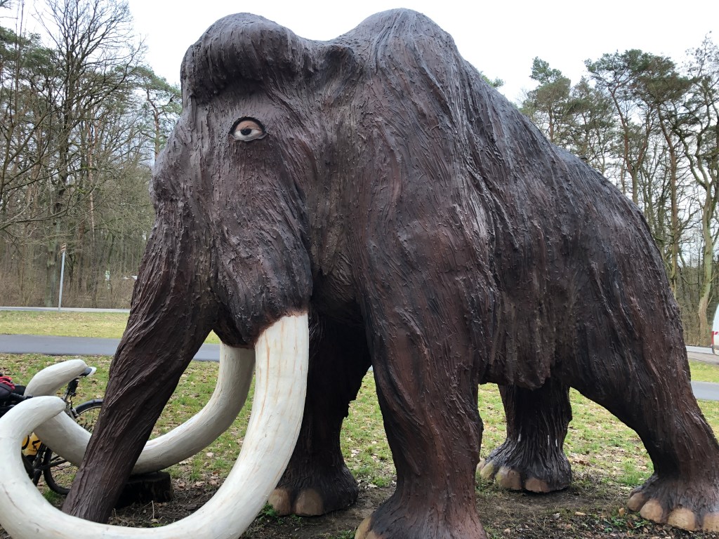 Kurz vor Joachimsthal geht es einen kleinen Hügel hinauf, wo ein mächtiges Mammut auf den „Geopark Eiszeitland“ hinweist.