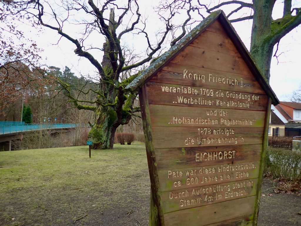 Normalerweise stirbt ein Baum bei einer solchen Operation. Nicht aber dieser Quercus Robur, der offensichtlich von sehr widerstandsfähiger Natur ist. So hat er die Jahrhunderte überdauert und fängt die Blicke auch in unserer Zeit mit seiner gewaltigen Erscheinung. Und als im Jahre 1878 wurde die Kanalkolonie umbenannt wurde, war die mächtige Eiche ein würdiger Namensgeber für den Ort Eichhorst.