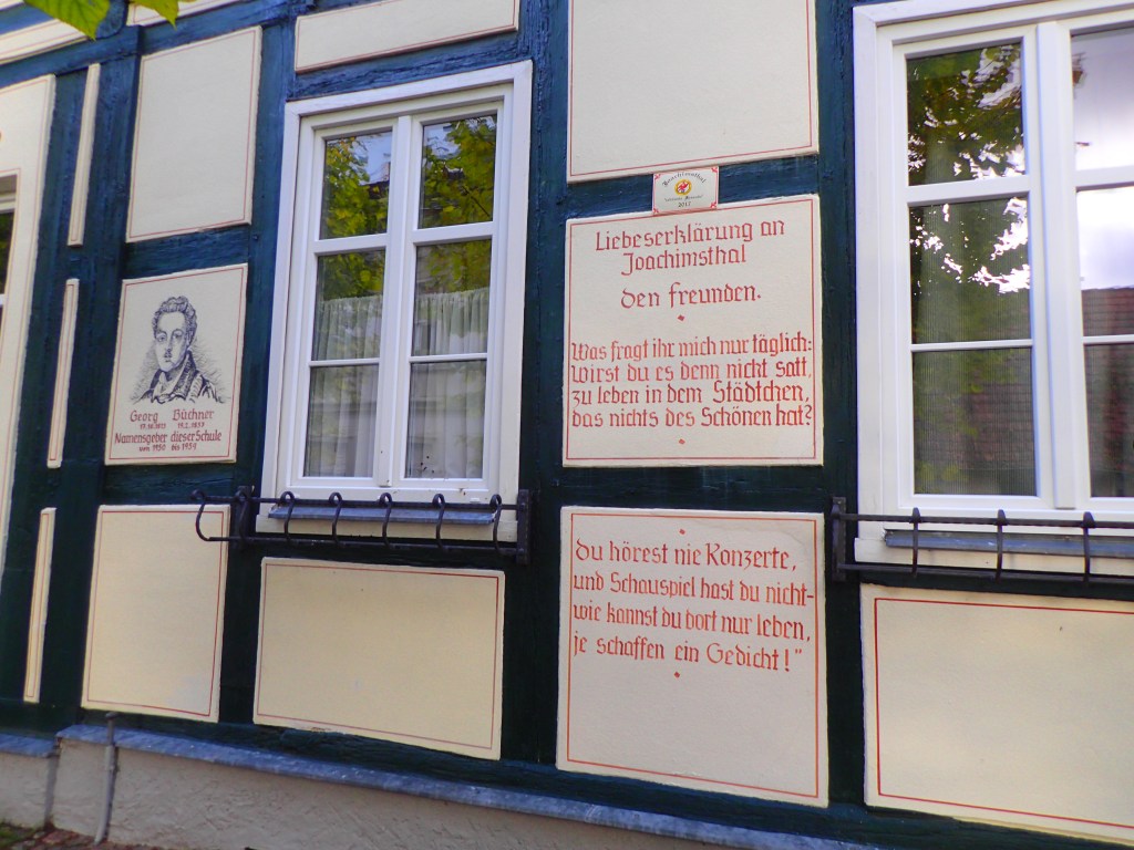 Eine kurze Pause, dann rolle ich über die Kuppe zur Schinkelkirche von Joachimsthal hinunter. Jedem, der hier vorbeikommt, sei ein kleiner Bogen am alten Gymnasium vorbei empfohlen. Dieser Ort atmet Geschichte!