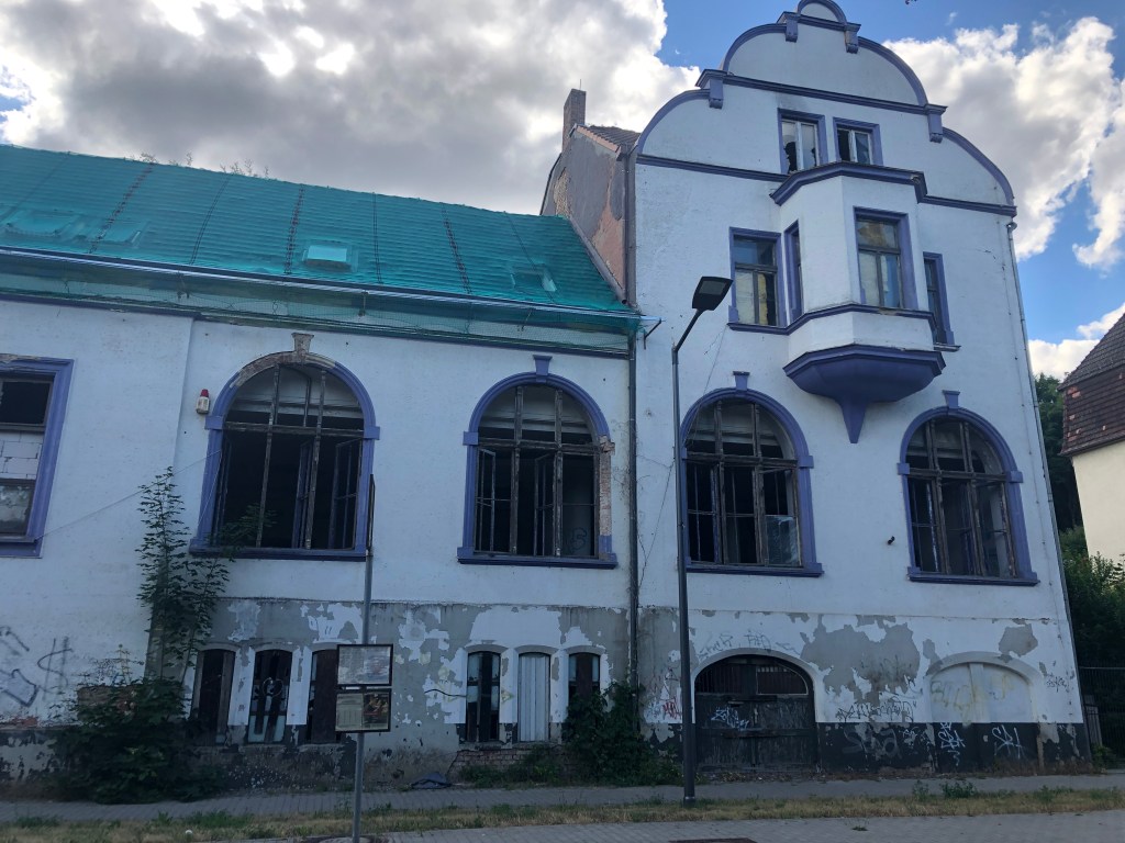 Ein paar Minuten später staune ich über ein verwahrlostes Gebäude – die ehemalige Stadthalle. Investor gesucht!