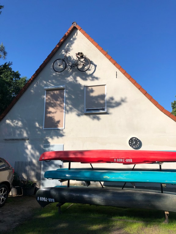 In Schlaubehammer tauche ich aus dem Wald auf und sehe wieder Zivilisation. Der Radweg an der Schlaube ist romantisch und verläuft in langen Bögen bis nach Weissenberg. Kein Hotel in Sicht, also befrage ich Google nach Unterkünften. In Aurith an der Oder werde ich fündig: Der Radlerhof ist Campingplatz, Imbiss, Pension und und. So die Beschreibung. Ich rufe an – der Chef wird sich auf den Weg machen und ein Zimmer richten. Ich muss also nicht am Oderstrand unter freiem Himmel nächtigen. Schöne Aussichten. 45 Minuten Kurbeln werden mir noch abverlangt, bevor ich Aurith erreiche. Der Radlerhof ist wirklich besonders: eine Mixtur von Imbissbude und vorgebautem Dach. Nebendran in einem renovierten, kleinen Haus ein paar Zimmer. Ich gönne mir an der Theke ein alkoholfreies Weizen zur Bekämpfung der beginnenden Dehydrierung. Es wirkt. Die Lebensgeister kommen wieder. Der Chef kommt auch und führt mich zum Abstellraum für mein Granfondo. Direkt neben der Tiefkühltruhe darf es sicher übernachten.Ein Dreibettzimmer steht mir zur Alleinnutzung mit Dusche und Toilette „überm Gang“zur Verfügung. Schnell ziehe ich mich um und bin fünf Minuten später wieder an der Imbisstheke. Jetzt bestelle ich ein Helles . Zwei Radler, die schwer bepackt auf dem Weg nach Norden sind, machen gerade eine Pause und berichten über ihre Pläne. Irgendwie ungläubig nehmen sie zur Kenntnis, dass ich heute knapp 200 Kilometer gefahren bin. Wir reden über Radfahren, Räder, Gott und die Welt. Als ich etwas zu essen bestellen will, beichtet der Chef, dass keine Speisen mehr verfügbar sind. KEINE! Also noch ein Bier und noch eins zum Mitnehmen aufs Zimmer. Um 21.30 Uhr liege ich flach. Hungrig, aber doch recht zufrieden mit dem Tag. Durst ist eben viel schlimmer als Hunger. Und Durst muss ich dank Neuzeller Klosterbräu nicht mehr leiden.