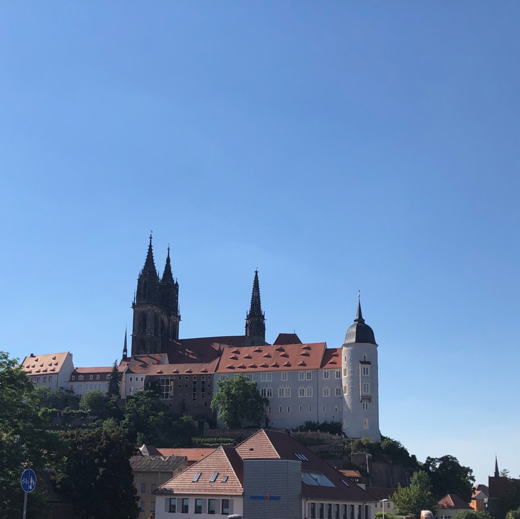 In Oberoderwitz ( kein Witz!) , steige ich in den Trilex und bin 70 Minuten später in Dresden Neustadt. Viele Höhenmeter und zwei Liter Schweiß eingespart. In Dresden habe ich Mühe, den Elberadweg zu finden. Ampeln, Ampeln, Autos, Autos… Irgendwann bin ich am Elbufer und kann es wieder rollen lassen. Die Innenstadt von Dresden reizt mich heute überhaupt nicht. Viel zu laut und getriebig finde ich es hier. Bei Niederwartha lasse ich mich verführen, auf die rechte Seite der Elbe nach Coswig zu wechseln. Ein Touristikhinweis lockt mich in die Weinberge hinauf. Das hätte ich besser nicht machen sollen. Fiese Anstiege ziehen mir den Saft aus den Beinen, und Wein trinken am frühen Nachmittag will ich schließlich auch nicht. Ich gleite wieder hinunter in die Elbauen und nehme Kurs Richtung Meißen. Eine halbe Stunde später wächst die Albrechtsburg vor mir in die Höhe.