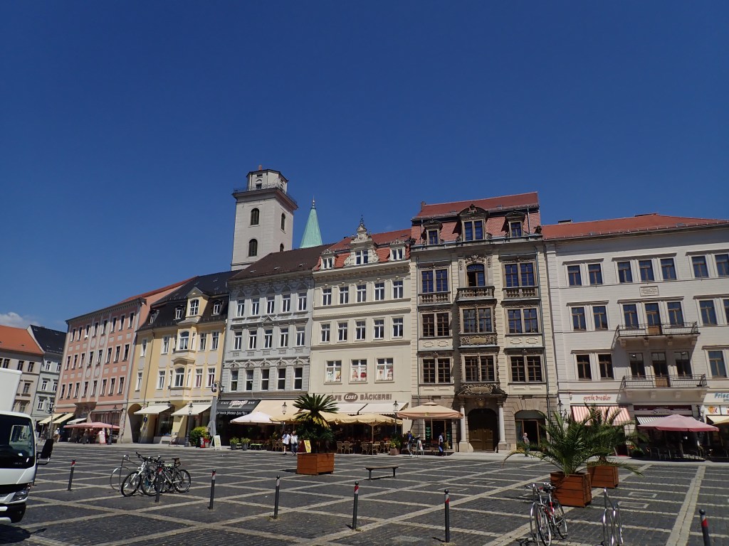 Noch 10 Kilometer bis Zittau. Der Radweg verläuft hier weniger schön entlang der B99. Ich bin halt verwöhnt. Die Altstadt von Zittau entschädigt mich mit ihrer historischen Kulisse. Jugendstilfassaden, mächtige Kirchen, ein Rathaus im Stile eines italienischen Palazzo. Man mag nicht glauben, dass diese Stadt in ihrer Geschichte viele Male in Schutt und Asche gelegt wurde: Hussiten, Schweden, Österreicher marschierten ein und hinterließen Trümmer. Immer wieder erholte sich die Stadt. Wurde Anfang des 20. Jahrhunderts dank der Tuchmacher und einem riesigen Besitz an Wald, Grund und Boden reichste Stadt Sachsens.