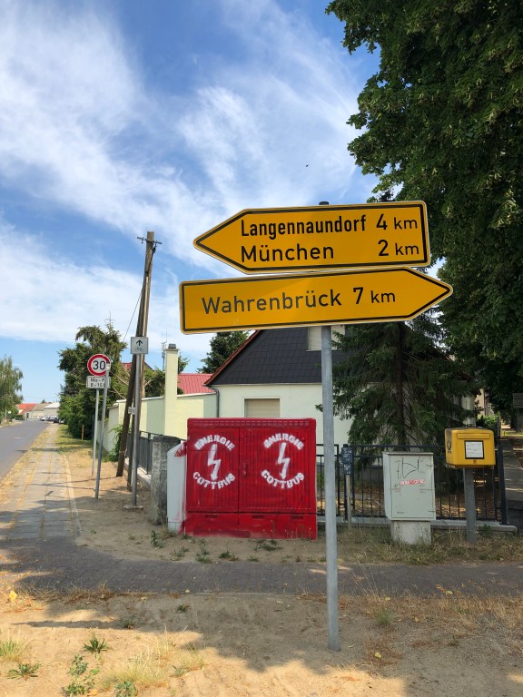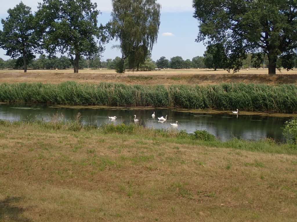 Erst 20 Kilometer weiter im Norden, bei Herzberg, zeigt sich der Himmel wieder im ursprünglichen Blau. Feuerwehren und Katastrophenschutzfahrzeuge kommen mir auf dem Weg zur Feuersbrunst entgegen. Der Brand scheint offensichtlich größere Dimensionen zu haben. Ich radle an der Schwarzen Elster entlang, auf dem Radweg und den Nebenwegen. Was zur Folge hat, dass ich keine Bäckerei, keine Tanke, kein Lebensmittelgeschäft anzapfen kann, um meinem quälenden Durst mit geeigneten Getränken beizukommen. Mittlerweile zeigt das Thermometer 32 Grad, es wird ungemütlich mit geleerten Trinkflaschen.