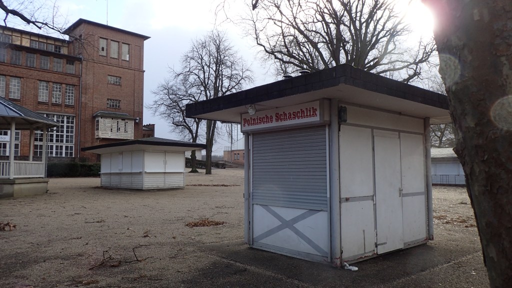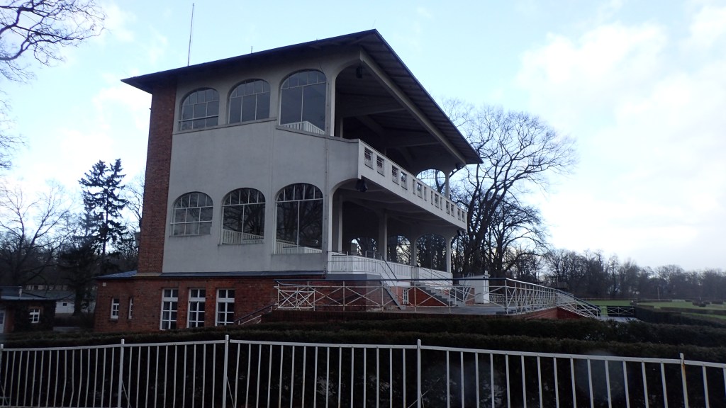 Ich erlebe an diesem Tag die altehrwürdige Rennbahn im Winterschlaf. An den Tribünengebäuden blättert der Putz ab, Geländer und Fenstergitter rosten vor sich hin, Die Holzbuden brauchen dringend einen neuen Anstrich.