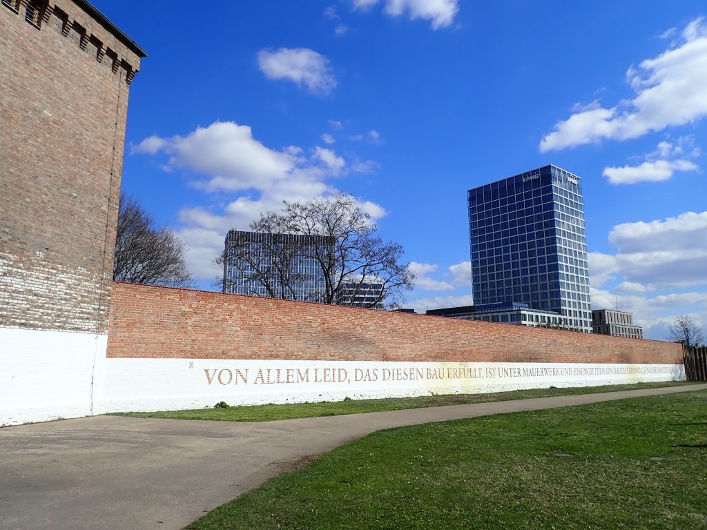 „Von allem Leid, das diesen Bau erfüllt, ist unter Mauerwerk und Eisengittern ein Hauch lebendig, ein geheimes Zittern“ Dieses Zitat aus einem Gedicht von Albrecht Haushofer, einem Schriftsteller, der im April 1945 hier hingerichtet wurde, ist auf der ehemaligen Gefängnismauer in großen Lettern eindrücklich und nachdenklich stimmend zu lesen.