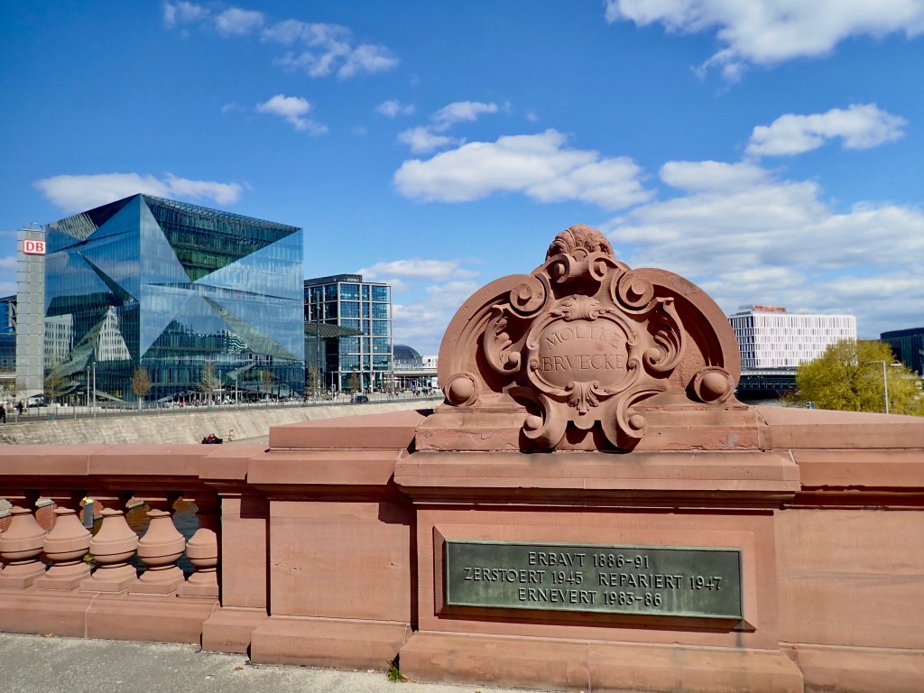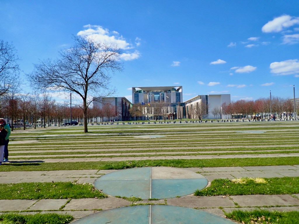 Das Cube-Bürohaus mit seinen abgeschrägten Glasflächen wetteifert mit den Laternenskulpturen auf der Moltkebrücke. Die gut gelaunten, flanierenden Menschen wissen nichts vom Elend der Obdachlosen hinterm Bahnhof. Mich bringen sie und der Anblick vom „neuen Berlin“ auf positive Gedanken. Reichstag und Kanzleramt strahlen im Sonnenlicht. Geradezu unschuldig.