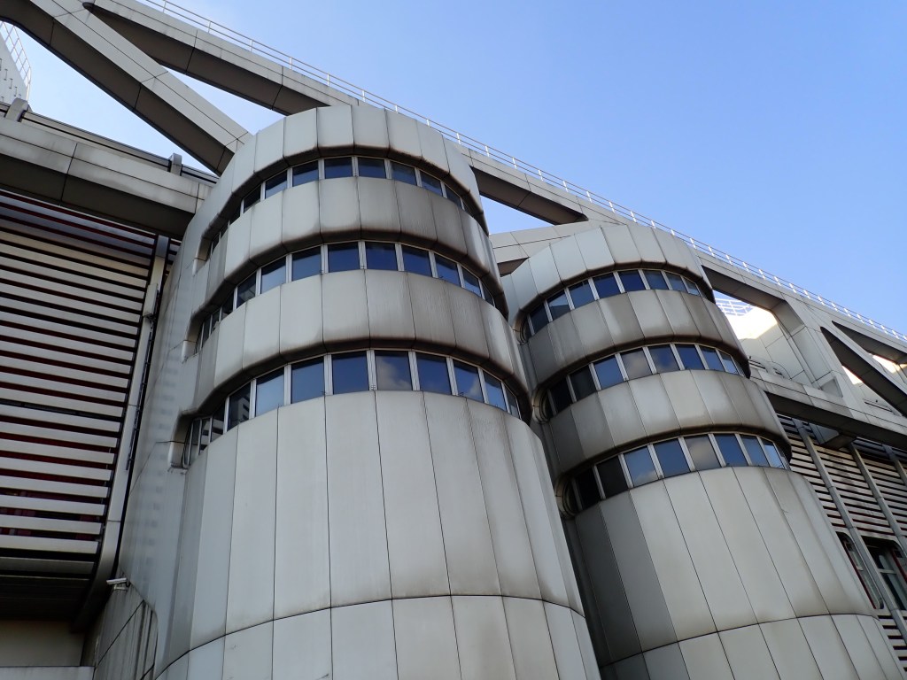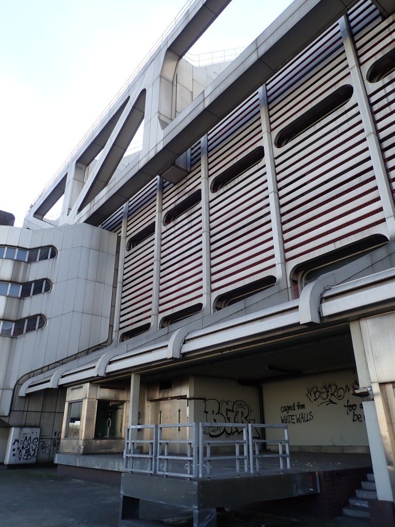 Ich rolle an der Längsseite entlang, ganze 300 Meter Beton und Alu. Zukunftsarchitektur wurde das noch 1979 genannt. Ohne Zukunft! Als ich mein Taurine Carbon MTB am ICC vorbeischiebe, denke ich an die Zeit, als ich das Bauwerk vital erlebt habe, mit vielen Menschen drin, mit großen Veranstaltungen und 5000 Besuchern in einem Saal. Am 16. Februar durfte ich als Mitorganisator der Mercedes-SL-Markteinführung die begeisterten Teilnehmer erleben. Begeistert von der Architektur und begeistert vom neuen Roadster. Schön war das. Und dann noch einmal 22 Jahre später, im Juni 2001, spielte Mark Knopfler im zarten Alter von 51 virtuos und stimmungsvoll mit seiner Band. Ein starkes Erlebnis. Wieder 5000 Zuschauer. Dann, im Jahr 2014, war die Daimler-Hauptversammlung die letzte große Veranstaltung, bevor der Riese in den Dauerschlaf geschickt wurde – aus dem er bekanntlich bis heute nicht geweckt worden ist