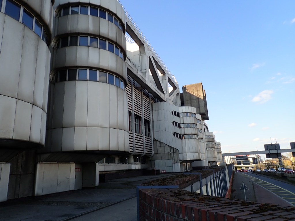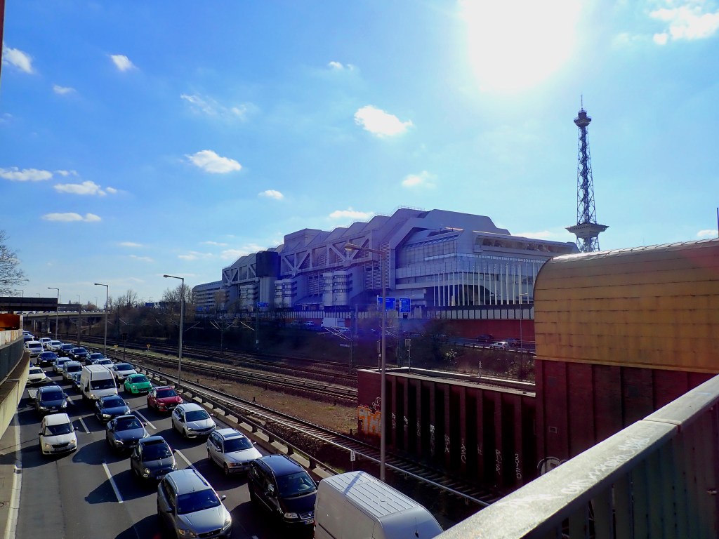 Am Halensee mache ich einen Bogen nach Norden und halte zielsicher auf den Funkturm an der Messe und das ICC zu. „Internationales Congress Centrum“ – Welch ein Name, was für ein Koloss von Bauwerk. Im Jahr 1979 eingeweiht und 2014 geschlossen. Das war es! Im „zarten Gebäudealter“ von 35 Jahren in den Ruhestand geschickt, seitdem steht es nur noch da. Verwittert, vergammelt, kostet Unsummen pro Jahr nur für die Erhaltung von Lüftung, Strom-und Wasserleitungen und dafür, dass es nicht durch das Dach regnet. Bauherr und auch heute noch Eigentümer: die Stadt Berlin.