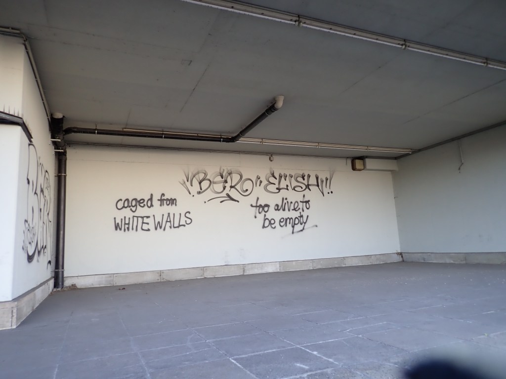 Die Gegensätze können größer kaum sein: Eine Ecke weiter biege ich auf den Innenbereich des Geschichtsparks für das ehemaligen Zellengefängnis Moabit ein. Hierhin „verirrt“ sich kaum je ein Tourist. Auch ich bin heute hier das erste Mal seit 25 Jahren Berlin. Seit fast zwei Jahren hausen hier Menschen ohne festen Wohnsitz, ohne Arbeit, die meisten kommen wohl aus Rumänien. Aus einem EU-Land! Ist das nun besonders liberal und tolerant seitens des Bezirkes Mitte oder wird einfach hilf- und konzeptlos weggeschaut? Et läuft doch – irgendwie…