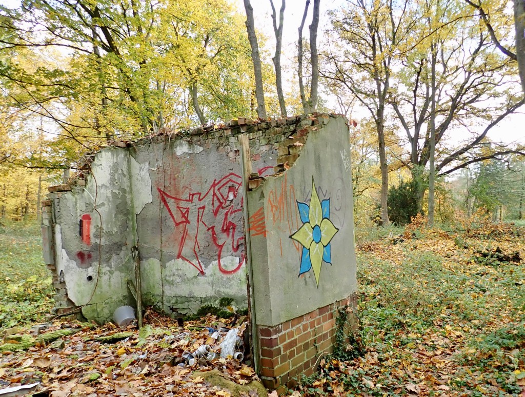 4. November, ich nutze den herrlichen, milden Tag und fahre hinein in den Mühlenbecker Forst mit seinem mittlerweile rotbunten Laubwald. Mitten drin das Schloss Dammsmühle. Eine ganze Reihe von Investoren arbeiten sich einigermaßen wirkungslos an dem Projekt ab. Wird es ein Hotel, eine Tagungsstätte, oder bleibt es eine halbfertige Ruine? Wer weiß es.