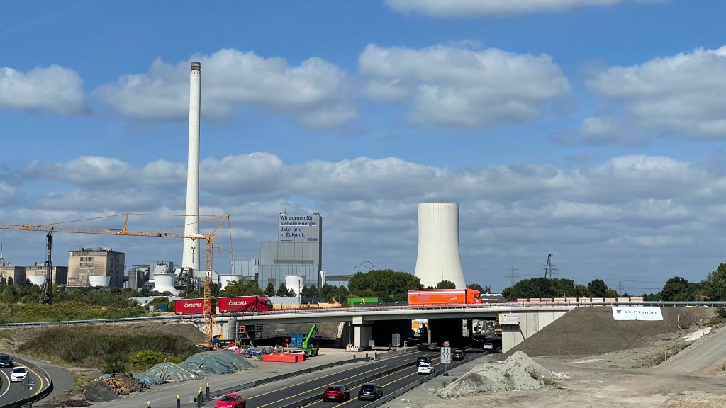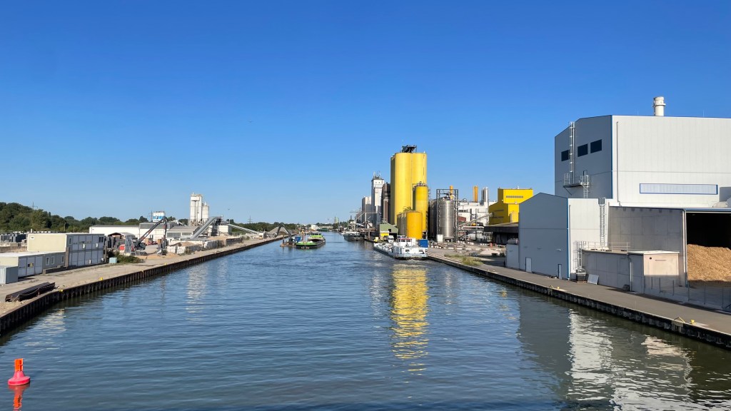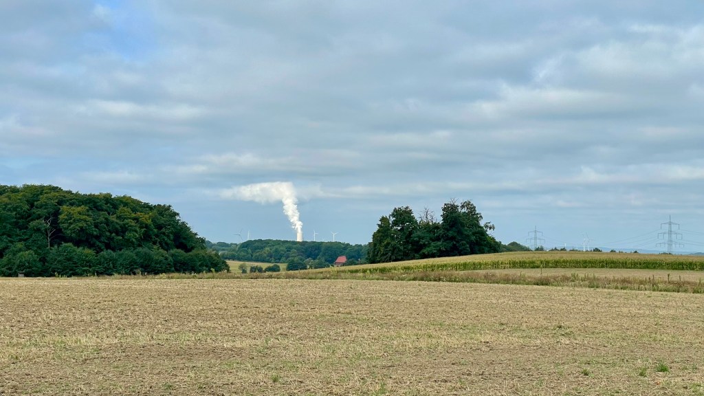 In Hamm mache ich erst einmal eine Umwegschleife nach Osten am Hamm-Lippe-Kanal entlang, bis ich schließlich auf die Nordseite queren kann, auf einen nicht beschilderten Gravelweg direkt am Deich. Pumpwerke, Kläranlagen, schließlich das Gersteinwerk, ein ursprünglich riesiges Kohlekraftwerk mit einem Kamin von 280 m Höhe. Zunächst rückgebaut und zum Gaskraftwerk umgerüstet. Heute nur noch Reserve für Versorgungsengpässe bei den „Erneuerbaren“. Wandel vom Kohlekraftwerk zum integrierten Standort für die Energiewende, so beschreibt das die RWE.