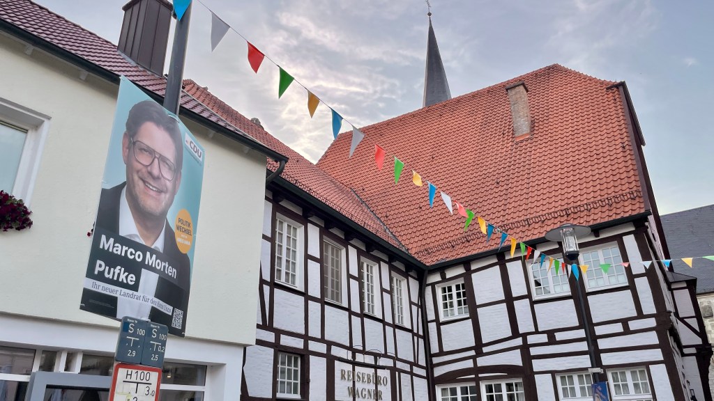 Noch ein paar Kurven und ich bin in der Altstadt von Werne, die ich von meinem letzten Besuch 2022 in positiver Erinnerung habe. Marktplatz und Rathaus und in diesen Tagen eine Wahlwerbung am Laternenpfahl: Marco Morten Pufke von der CDU will endlich die Vorherrschaft der SPD brechen.