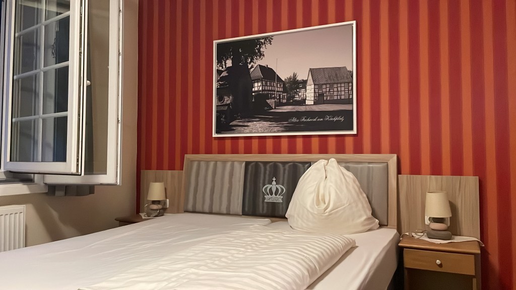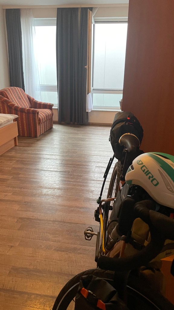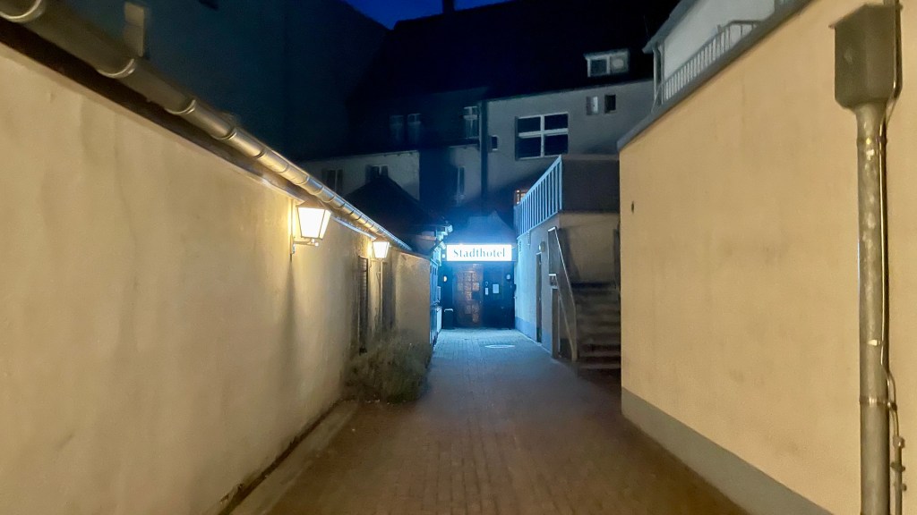 So beschaulich die erste Runde durch die Innenstadt wirkt, so ernüchternd dann der Eingang zum gebuchten Hotel Kolpinghaus. Die Türen verschlossen, nur von der Rückseite kann ich zu einer funktionierenden Klingel vorrücken. Ein junger Mann öffnet mir und versucht sich an der Buchung meines Zimmers. Schließlich habe ich den Schlüssel in der Hand, das Topstone steht wie das letzte Mal sicher in der Kegelbahn. Beim Italiener am Marktplatz werde ich für den leichten Frust beim Einchecken genussvoll entschädigt. Beste Pasta, kühles Pils.