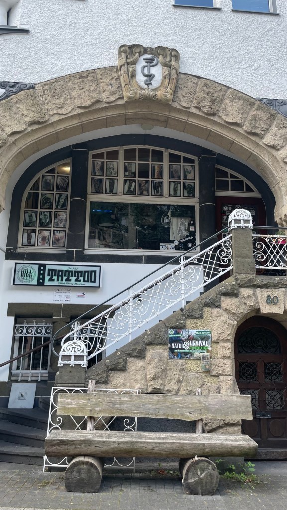 Ein treffliches Beispiel für die typische Nutzung der alten Bausubstanz liefert ein Tattoo-Studio in einer vormaligen Apotheke.
