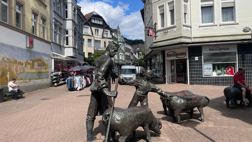 Jugendherbergsgründer Richard Schirrmann schaut mit traurigen Augen in die Altstadtgasse, mit mehr Leerstand als Wohlstand. Von 34000 Einwohnern im Jahr 1970 sind gerade noch 16800 geblieben. Die Metallindustrie, die Drahtwerke, für die Altena berühmt war, gibt es nicht mehr. Die Ruinen am Lenneufer machen auf bestürzende Weise deutlich, wie Strukturwandel sich auswirken kann.