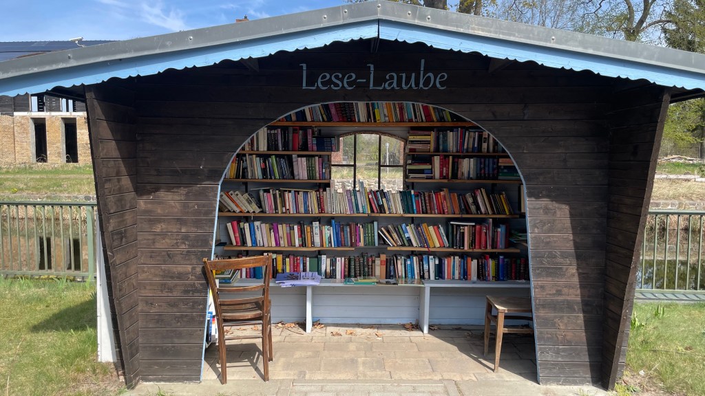 Vor der liebevoll gestalteten und sorgsam gepflegten Leselaube, die ursprünglich eine Bushaltestelle war, komme ich ins Gespräch mit einer Einwohnerin, die ganz begeistert von Zerpenschleuse spricht. Nebendran betreibt sie einen Kanuverleih, der seit der 2016 wiederhergestellten Verbindung von Langem und Altem Trödel für Wassersportler und Touristen attraktiv geworden ist.