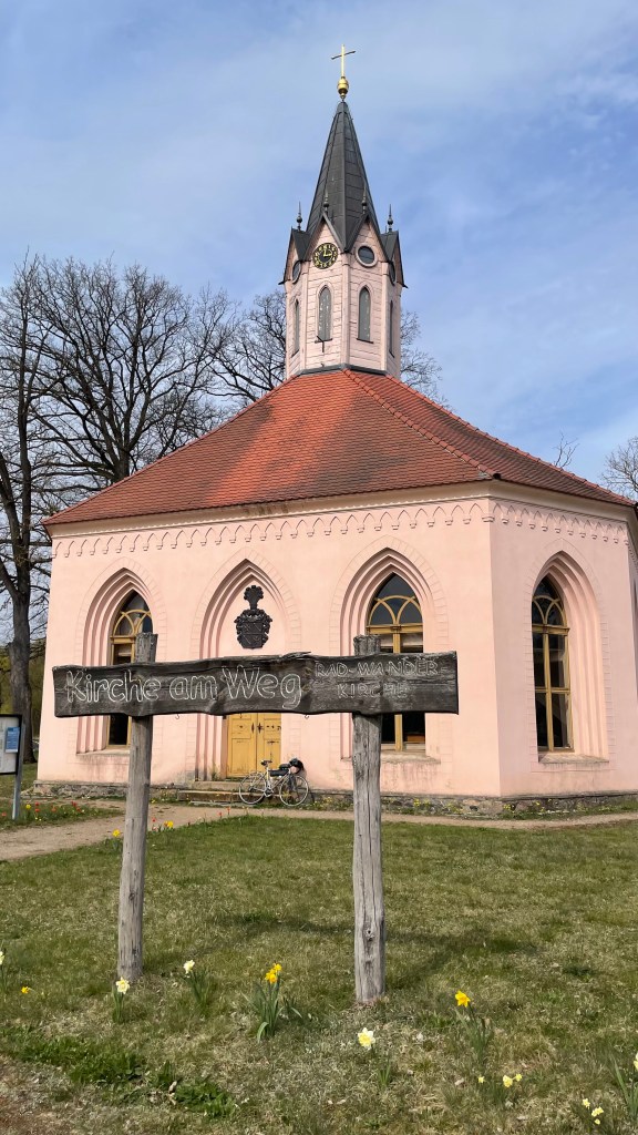 Ich schaue auf mein Garmin, es ist 14. 40 Uhr, 75 Kilometer stehen zu Buche. Zeit, wieder Kurs Süd zu setzen. Also ab nach Dannenwalde mit seiner schönen Radfahrerkirche.