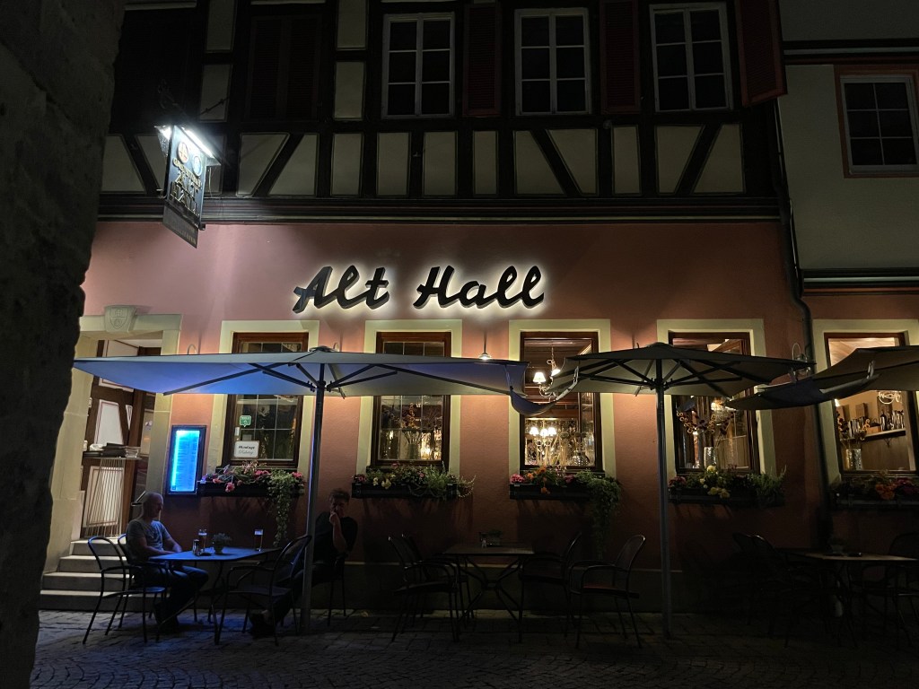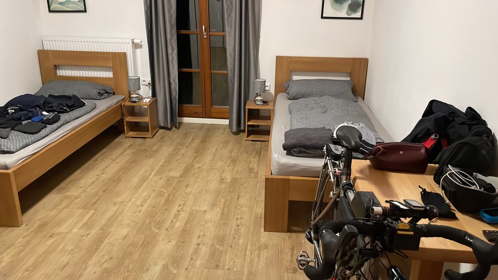 Bis hierher bin ich ohne große Pausen gefahren, nach den 70 Harz-Hügelkilometern sagt mir aber mein Körper, dass er jetzt sofort Ruhe braucht. Also frage ich die nette Tankwartin, wo ich in Sangerhausen eine schöne Sparkasse finden kann. Geradeaus, bis zum Kreisverkehr und dann noch 200 Meter – genau! In einer alten Villa prunkt die Sparkasse mit einem Vorraum der Luxusklasse. Warm, sauber, groß, ruhig. Nur ein wenig hart ist der Granitboden. Ansonsten top und ideal für ein Stündchen Ruhe. Guten Mutes starte ich danach in die letzte Harzetappe nach Ballenstedt. Nochmal 45 Kilometer „Harz querdurch“. Mit zwei Kurzpausen in Bushaltestellen und gefühlten 50 Anstiegen rolle ich vor dem Hotel „Auf der Hohe“ in Ballenstedt aus. Und wieder einmal werde ich mit überragender Gastlichkeit überrascht. Durch einen Seiteneingang dürfen die müden Randonneure ins Hotel hinein. Und als Luxus wird der Tresenraum einfach umfunktioniert zur Radler-Herberge. Die Wirtin macht mir einen Teller Soljanka warm, dazu trinke ich eine große Apfelschorle. Wunderbar! 390 Kilometer.