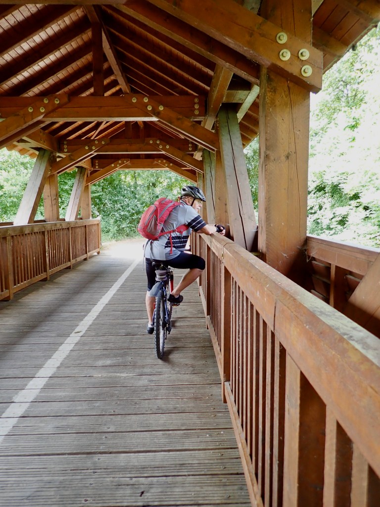 Wo bisher eine Brücke stand, klafft jetzt ein Wassergraben mit herausstehenden Brückenstümpfen. Unser Begleiter meint trocken: Nimm dir ein Brett und schwimm rüber! Wir entscheiden uns für den Rückzug aufs Trockene und fluchen über den Zwangsumweg.