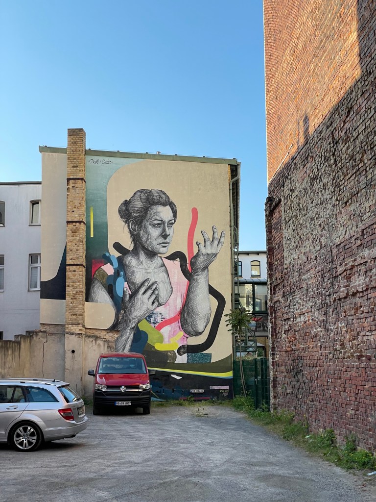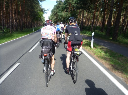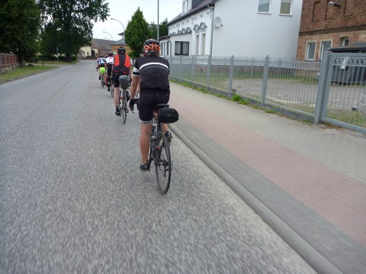 Wir fahren auf dem ersten Abschnitt eines gerade mit großem politischen Pomp eingeweihten Radschnellweges. Nach etwa einem Kilometer sind wir schon durch… War es das schon? Irgendwann sollen es 18 Kilometer Pendlerstrecke werden. Hoffentlich werden wir das noch erleben. Und hoffentlich dann mit notwendigen Verbesserungen. Denn wenn sich Fußgänger und die Kinder des nahgelegenen Spielplatzes auf die „Autobahn“ verirren, sind sie arg gefährdet.