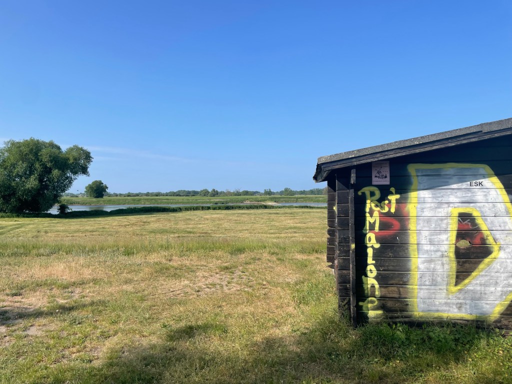 Endlich rollen wir wieder in die Neckarauen ein. Grün, mit Blütenduft anstelle Industriegestank. Dann urplötzlich stehen wir auf einer Radautobahn, pardon, einem Radschnellweg! Und staunen! Fünf Meter breit, Mittelstreifen, Seitenstreifen… An Fußgänger wurde hier offensichtlich nicht gedacht!
