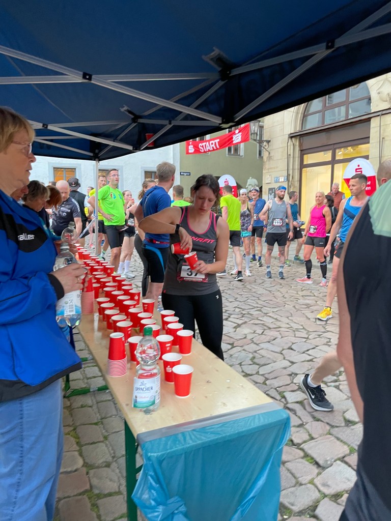 Nur noch eine Neckarkurve, dann sind wir in Eberbach und fahren über die mit „Eberflaggen“ geschmückte Brücke in die Altstadt.
