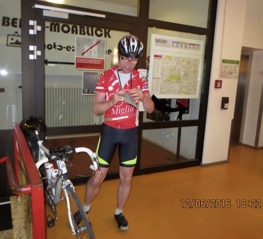 Dann, in Neckargerach, locke ich Peter auf einen schmalen Weg, der zunächst direkt am Neckar entlangführt, ohne Steigung. Zunächst! Dann aber geht es rauf in den Wald, immer weiter, dann wird der Weg schlechter und schlechter. Das Garmin zeigt immer noch einen fahrbaren Weg, aber der führt vom Neckar weg, auf die Berghöhen hinauf. Schließlich halten wir an, trinken einen Schluck und beschließen den Rückzug. Peter hält sich mit Flüchen zu meinen Navigationskünsten sehr freundschaftlich zurück. „Er hätte es schließlich auch nicht besser gekonnt“, sagt er mir. Danke Peter!
