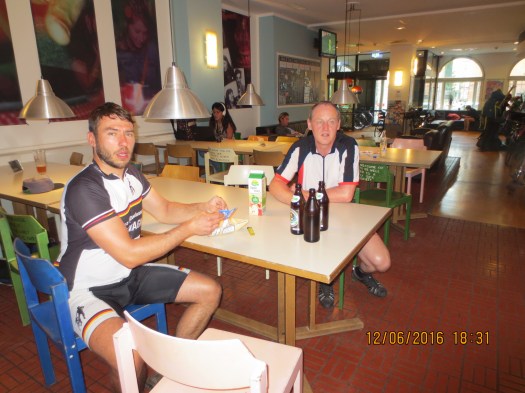 In Weinheim wähnen wir uns kurz im nahen oder ferneren Osten. Eine Moschee steht mitten in einem Gewerbegebiet. Dann machen wir einfach stoisch Kilometer. Auch in Weinheim können wir kaum Weinreben entdecken. Die Bundesstraße 3 ist gesäumt von wenig attraktiven Gewerbeansiedlungen. Für uns Radler jedenfalls ist das eher langweilig hier. Und den Umweg hinein in die Hänge und Dörfer des Odenwaldes sparen wir uns. Wir sind schließlich auf unserer Schlussetappe. Sulzbach, Laudenbach, Hemsbach, schließlich Bensheim, wo wir auf die Suche nach einem Nachtquartier gehen. Gefühlt jeder dritte Laden ist hier ein Friseursalon. „Josefine, Friseur relax, Ästhetik Beauty, Haargold, Kajaks Hair, Hatice´s hairstyle … “ Aber wir suchen doch nur ein kleines Hotel. Dann wählen wir für unsere letzte Übernachtung das Parkhotel Krone. Schönes Zimmer, prächtige Fahrradgarage. Aber dann auch für uns Gäste kein Platz mehr auf der Restaurantterrasse. „Bin nur allein und kann nicht mehr Tische bedienen“, redet sich der unwillige junge Mann heraus. Wir sind stocksauer und gehen auf die Suche nach einer Alternative. Star Döner, Kebap Haus, Meat Heaven, Rhodos … Und im einzigen Biergarten, der gut aussieht, feiern junge Damen einen Junggesellinnenabschied. Alle Plätze sind besetzt. Langsam macht sich Frust bei uns breit. Die Erlösung finden wir dann im Angebot eines Lidl-Marktes, wo wir uns mit Bier, Wein, Würstchen und Chips eindecken. Für ein wahrhaft frugales Mahl auf dem Hotelzimmer. Wir lassen die Erlebnisse der Woche Revue passieren, schwelgen in unseren Eindrücken, sind zufrieden mit uns und der Welt. Der Schlummer ist gut und die letzten 28 Kilometer hin zum Darmstädter Bahnhof gelingen locker.
