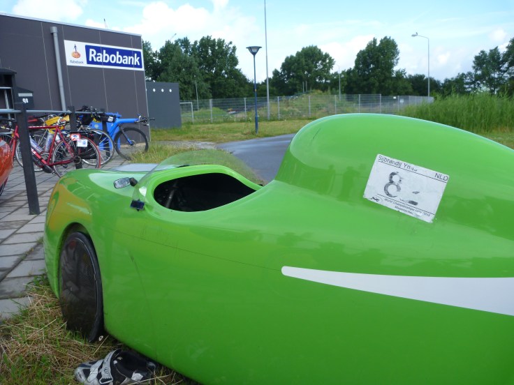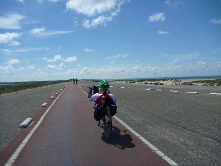 Als ich gegen 14 Uhr am westlichen Brückenkopf ankomme, bin ich angenehm überrascht. Die Bauzäune sind weg, die Konstruktion in grau wirkt geradezu modern, hat aber auch etwas von einem stählernen Tunnel. Insgesamt ist die Brücke 860 Meter lang, je 330 m auf deutscher und auf polnischer Seite, 200m in der Mitte führen auf einem Damm über die Oderinsel. Ich rolle über die Planken aus Verbundmaterial und wundere mich über die Metallstege, die etwa alle 50 Meter quer darüber liegen. Klapprig und glatt. Und bei näherem Hinschauen nicht besonders gut verarbeitet. Lack bröselt schon von der Oberfläche. Schweißperlen sind nicht sauber entfernt worden. An den Diagonalträgern prangen spitze, scharfe Stahlprofile. Wenn hier jemand nicht aufmerksam fährt, drohen ihm fiese Verletzungen. Wem ist nur solch ein Blödsinn eingefallen?!