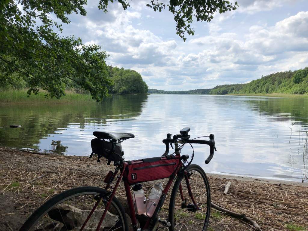 Der Kaffee ist gut, dazu ein gekochtes Ei, eine Scheibe Käse, Marmelade aus der Folienverpackung. Ein Starterfrühstück, kein Genussfrühstück. Um 8.30 Uhr wecke ich mein Granfondo, hänge die Gravel-Packtaschen ein und rolle auf den Oder-Neiße-Radweg hinüber. Die Kulisse von Eisenhüttenstadt kommt näher, alte und neue Industrie reckt die Schlote in den Himmel. Von ehemals 53000 Einwohnern im Jahre 1988 sind bis heute 23000 übrig geblieben. Eisenhüttenstadt war zu Beginn der 50er Jahre als sozialistische Planstadt auf Geheiß der SED entstanden. Ein Eisenhüttenkombinat mit sozialistischer Wohnstadt. Die Schlote qualmten wie im Ruhrgebiet. Fast hätte die Stadt zum 70-jährigen Todestag von Karl Marx den Namen Karl-Marx-Stadt erhalten. Dann bekam Chemnitz den Vorzug und die Planstadt bekam den Namen „Stalinstadt“. Keine zehn Jahre dauerte es, da wurde der Ort im Rahmen der Entstalinisierung umgetauft in Eisenhüttenstadt. Von den Einwohnern schlicht „Hütte“ genannt.