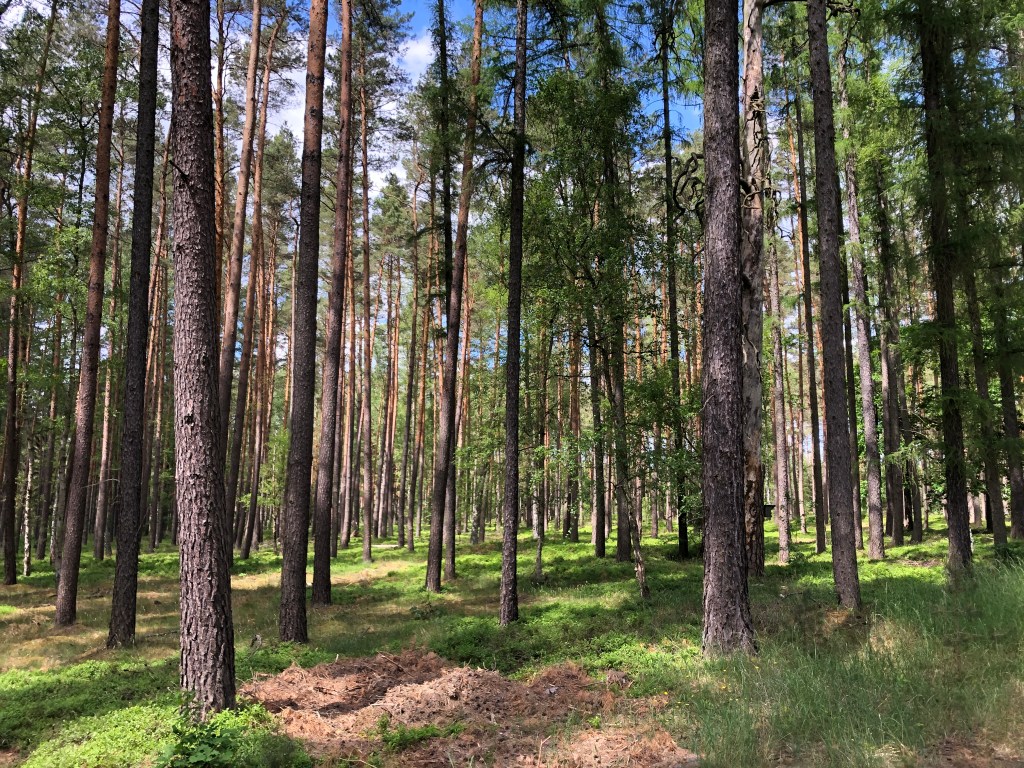 Ich bleibe heute ausnahmsweise auf dem Oderdamm, weil ich Neuzelle bestens kenne. Vor meinem inneren Auge lasse ich mir ersatzweise einen Erinnerungsfilm der letzten Besuche ablaufen. Die nächsten 30 Kilometer erblicke ich Natur, Natur, Natur. Ein paar Minuten beobachte ich eine freche Elster, die immer wieder auf einen doppelt so großen Milan herabstößt und ihn ärgert. Er wehrt sich nicht, er weicht nur immer wieder aus, bis der Plagegeist von ihm ablässt. Auch eine wirksame Methode.