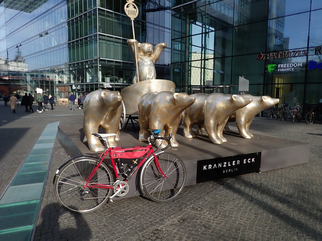 Ich rolle am Hauptbahnhof und dem herrlich spiegelnden City-Cube vorbei und bin wieder einmal fasziniert von der Architektur. Start-Stopp-Foto, Start-Stopp – nächstes Motiv und so weiter. Es ist immer wieder ein Erlebnis, hier hindurchzukurven. Das Winterlicht und der dynamische Wolkenhimmel beleuchten die Szenerie filmreif. Unter den Linden tauche ich ein ins alte Berlin mit Humboldtuniversität, Oper und Berliner Dom; Friedrich der Große sitzt, den Dreispitz auf dem Kopf, den Blick nach Osten gerichtet, auf seinem Lieblingspferd Conde. Die mächtige Bronzeplastik ist ein Meisterwerk von Christian Daniel Rauch, geschaffen 1839-51.