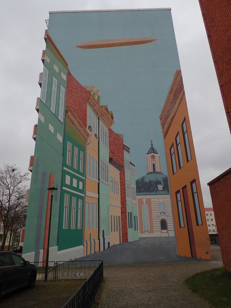 In Tegel habe ich schon oft die riesigen „Mural Art“- Hochhausmalereien fotografiert. Heute gefällt mir dieses Kunstwerk des Künstler-Teams London Police am besten: Es verströmt spontan gute Laune und bringt mich frohgemut wieder nach Hause.