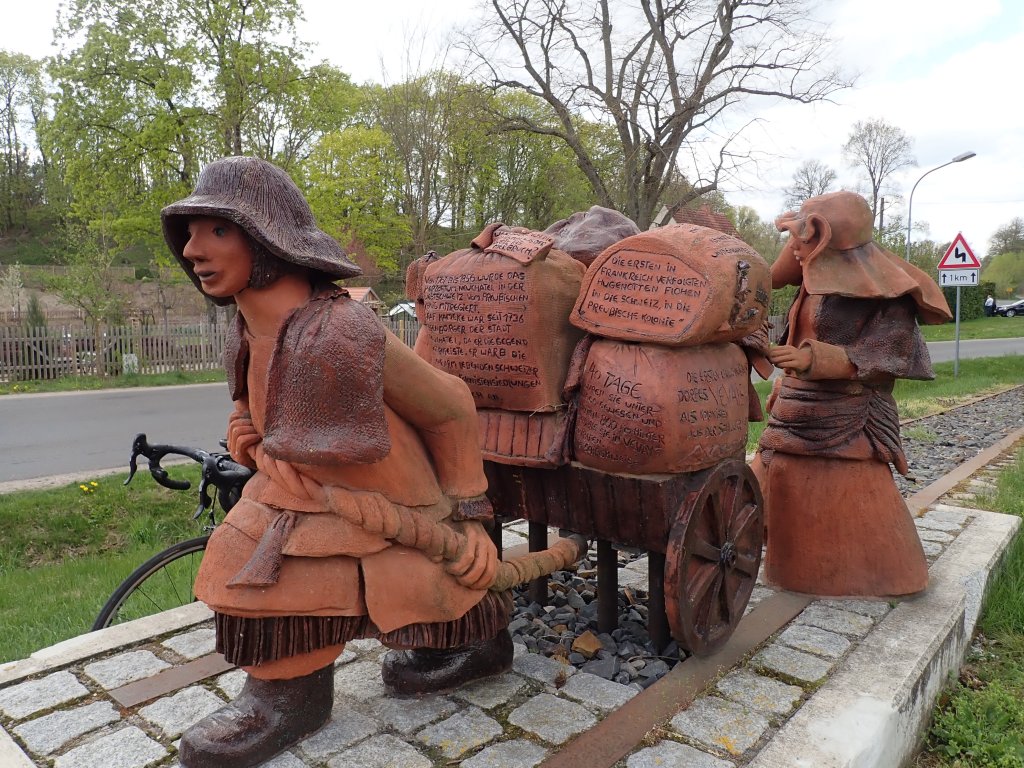 Im Blick haben die beiden zwei überaus unterschiedliche Kunstwerke: zum einen acht Stelen aus Edelstahl mit eingeätzten Fotos – auf einem Erich Honecker inmitten freundlicher DDR-Bürger. Andere zeigen Menschen von Arbeiteraufständen auf der ganzen Welt. Daneben die Bronzereliefs “ Die Würde und Schönheit freier Menschen“ der Mecklenburgischen Künstlerin Margret Middell.