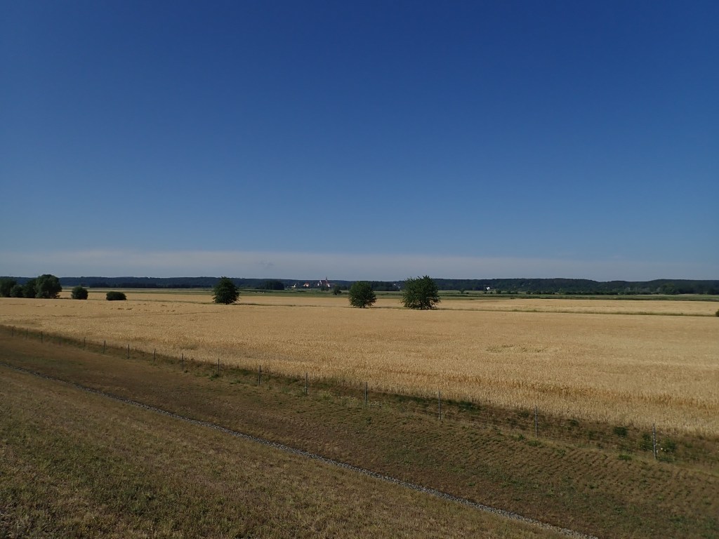 Wir fahren auf dem ersten Abschnitt eines gerade mit großem politischen Pomp eingeweihten Radschnellweges. Nach etwa einem Kilometer sind wir schon durch… War es das schon? Irgendwann sollen es 18 Kilometer Pendlerstrecke werden. Hoffentlich werden wir das noch erleben. Und hoffentlich dann mit notwendigen Verbesserungen. Denn wenn sich Fußgänger und die Kinder des nahgelegenen Spielplatzes auf die „Autobahn“ verirren, sind sie arg gefährdet.